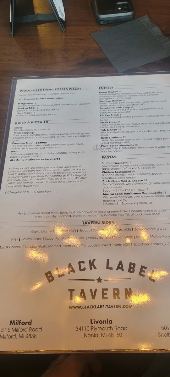 Grilled chicken, pearl onions, wild mushrooms, and bourbon cream. Served with garlic mashed potatoes (GF), unless another side is chosen.